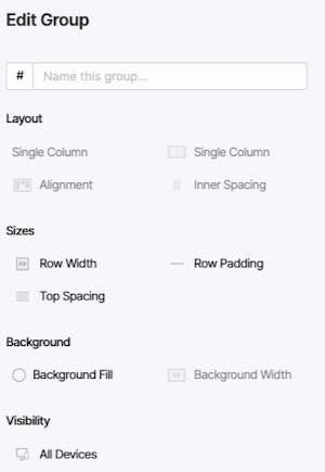 Mark the Group to change the settings of it. On the left side of the editor, you will find the following options to edit a Group: